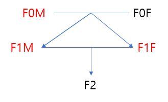 이 때 부계에서 야생 수컷과 F1 쌍이, 모계에서 야생 암컷과 F1 쌍이 있을 것이기 때문에 총 두가지 경로를 갖습니다.