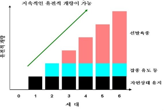 사전적인 의미에서 선발육종은 생물집단에 포함되는 변이 중 유용한 형질을 계속 선발해 자손의 형질을 개량하는 육종법이라는 의미를 갖고 있습니다.
