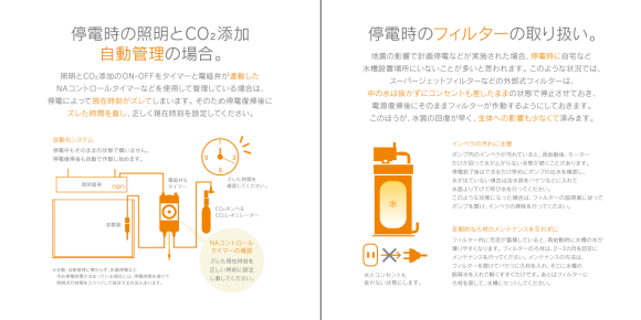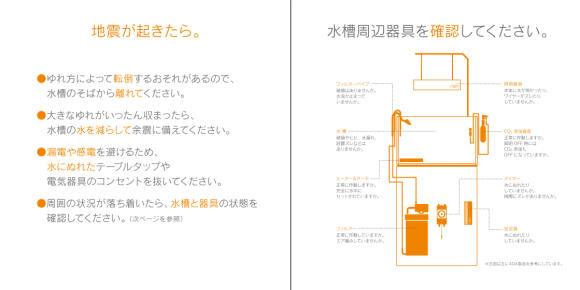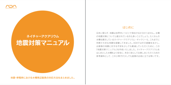 일본의 유명 수초 수조 용품 제작 회사인 "ADA" (Aqua design Amano) 사에서 배포한 지진 대비 수조 관리 메뉴얼입니다.