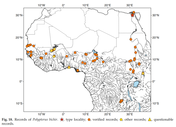 (현재까지 학술적으로 보고된 폴립테루스 비키르의 서식지) 1