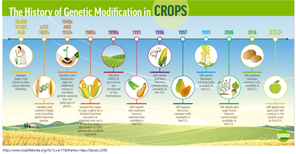 인류는 약 1만녀 전 작물을 재배하기 시작함으로서 자신들에게 유용한 동식물의 유전인자를 선발교배를 통해 변형시켜 작물과 가축의 육종을 시작했고, 현대에 이르러서는 분자생물학적인 방식을 접목하여 단세대 내에 육종을 완성시키는 유전자 마커 혹은 GMO 등의 기술을 사용하고 있습니다.