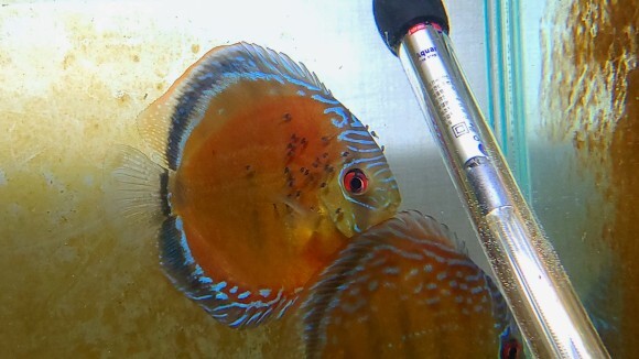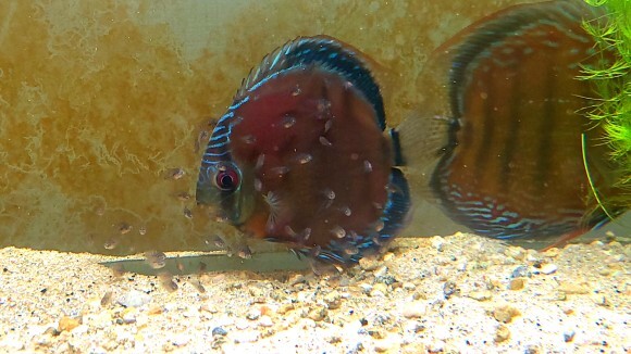 대부분의 경우에서 디스커스들은 체착에 이르기 전, 부화된 치어들을 산란했던 장소가 아닌 다른 장소로 이동시킵니다.