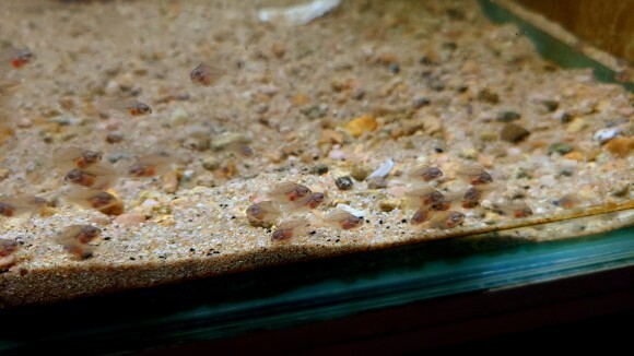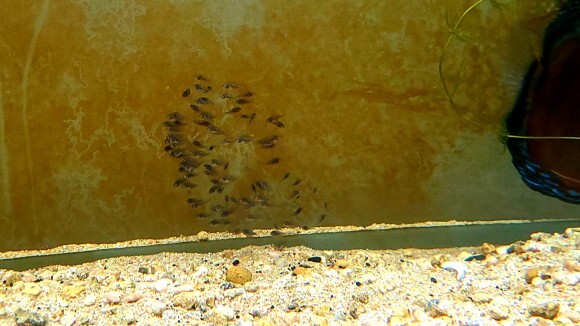 일반적인 디스커스 브리딩 자료에서는 이 시기쯤 치어들을 분리하는데, 제 경우 단순히 개체 수를 늘리는 것이 아닌 디스커스라는 종의 번식 습성 전반을 관찰하는 것 또한 목적이기 때문에 분리 없이 계속 종어들과 함께 사육했습니다.