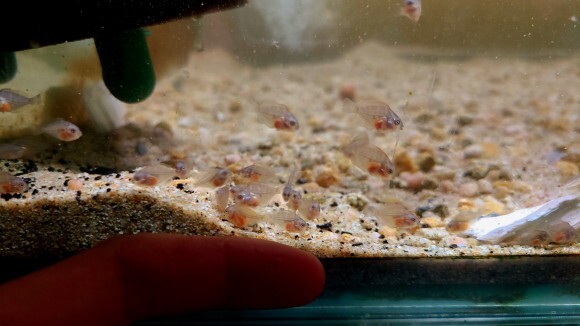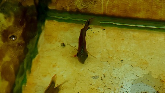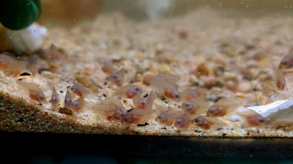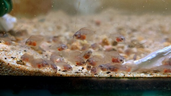 또한 이때부터 치어들이 브라인슈림프를 조금씩 먹기 시작하는데, 종어들이 공급한 점막을 먹은 치어는 배가 흰색을, 브라인슈림프를 먹은 치어들의 배는 주황색을 띕니다.