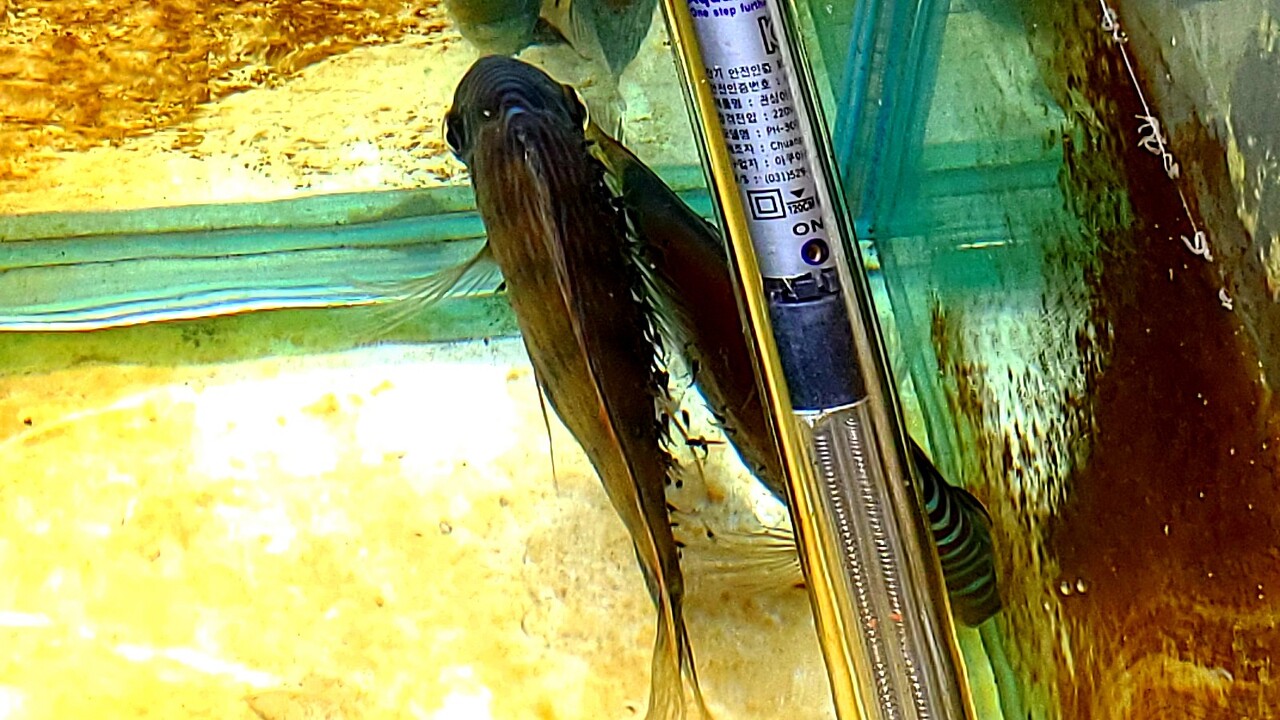 또한 대량환수를 진행하기 때문에 환수 도중 친어들의 몸 일부가 물 밖으로 노출되는 상황이 발생하여, 이로 인한 스트레스를 줄여주고자 수초인 붕어마름을 소량 수조에 식재해 환수중 도피할 장소를 만들어줬습니다.