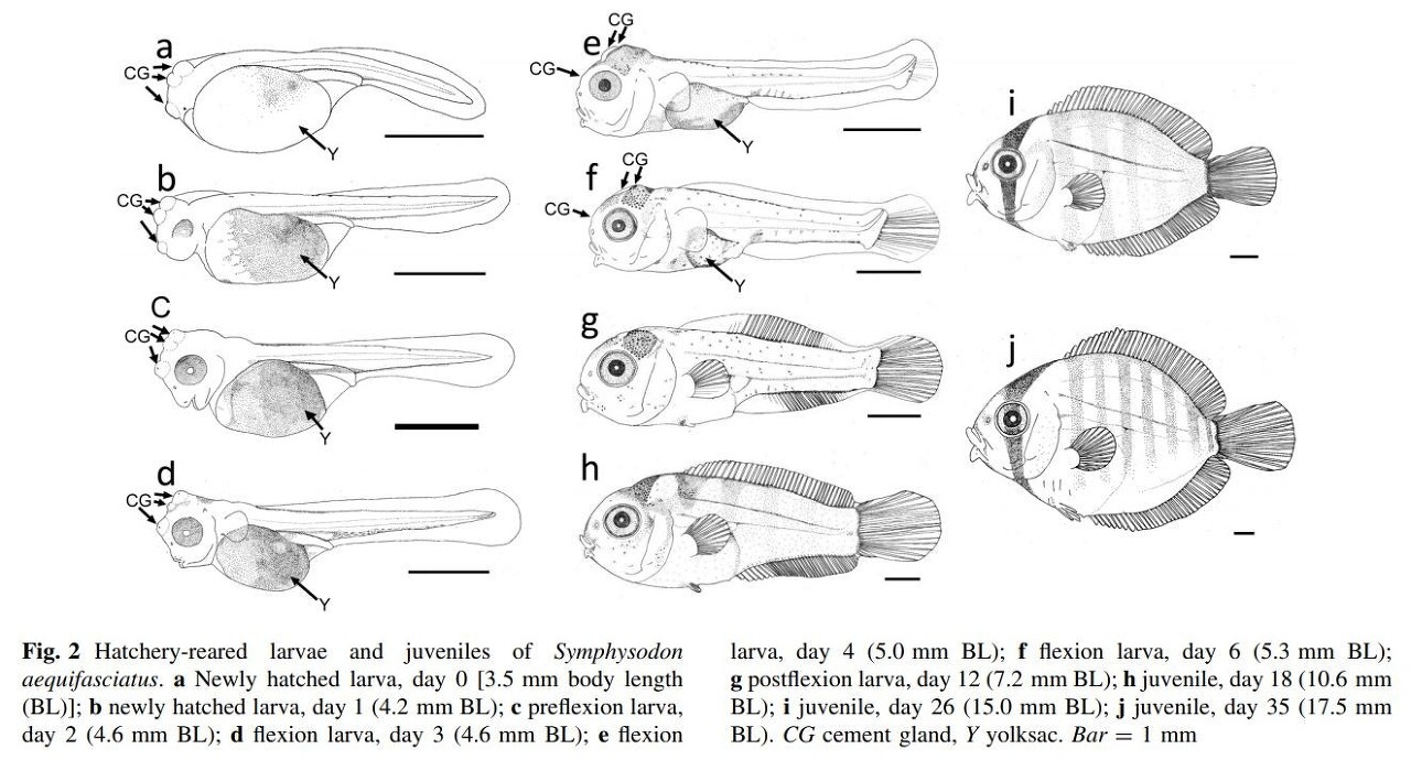 1) Shun Satoh, 2016, Morphological and behavioral ontogeny in larval and early juvenile discus fish Symphysodon aequifasciatus