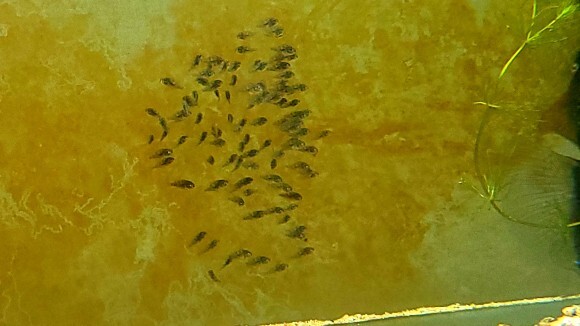 치어들에게 너무 갑작스러운 환수는 해가 될 수 있기 때문에 이 시기에는 브라인슈림프 급여 직전, 각 1회 약 50%정도의 부분환수만 진행해 남은 브라인슈림프를 제거해줬습니다.