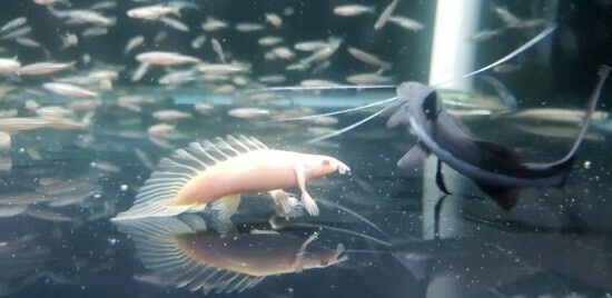 특히 사육시 좋은 먹이로는 대형어 전용 사료 (ex. 히카리 싱킹카니발), 냉동 미꾸라지 등이 있으며 여러 먹이를 섞어 급여하는 것이 가장 좋습니다.