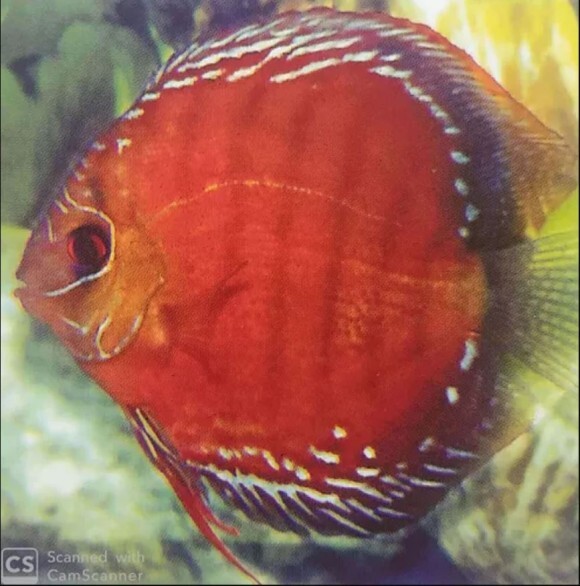 위 사진은 DF레드로 유명한 Discus Farm Itzu에서 브리딩 한 개체로, 우라리아산 개체들 사이에서 얻은 F1 개체와 산지를 알 수 없는 야생개체간의 크로스를 통해 나온 개체라고 합니다.