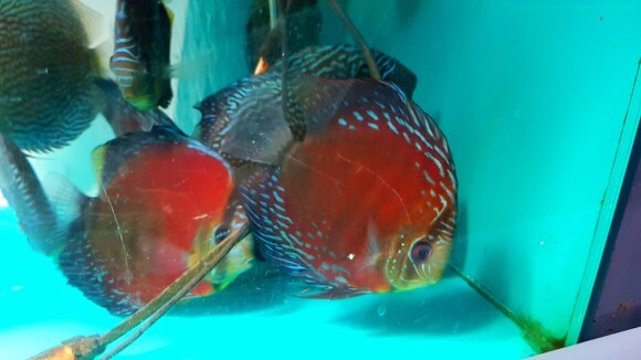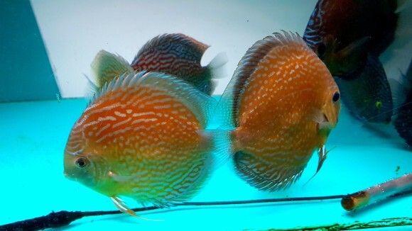 위 사진상의 개체들도 아스타크잔틴 급여를 통한 색상 조절이 어느정도 된 것으로 보임에도 불구하고 상당히 좋은 디스커스임에는 틀림 없습니다.