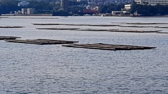 배 타고 들어가는 중 보이는 굴 양식장