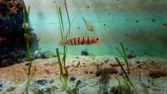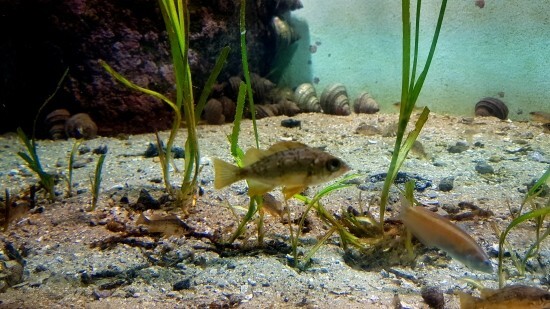 입구 수조의 소형어들.