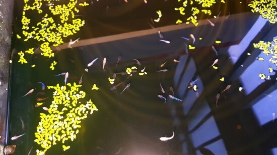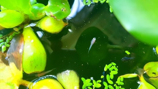 이 때 먹이는 양어장 사료와 일부 실지렁이를 급여하였으며, 육성 수조에는 부레옥잠과 개구리밥, 그리고 청수로 환경이 조성되어 있었습니다.