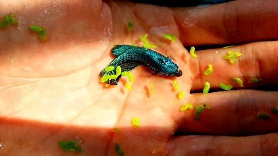 암수 모두 자이언트 베타인 만큼 산란한 알의 수가 상당해 이 때 부화한 치어가 약 500마리를 넘었습니다.