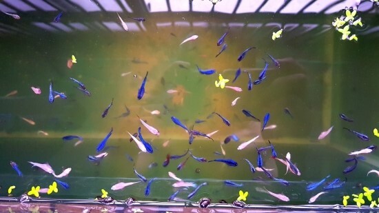 부화통에서 약 1개월간 더 키워올리고 4자수조로 이동한 치어들