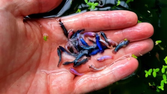 종어들은 둘 다 블루림 패턴을 한 개체들이었으나, 치어들은 매우 다양한 모습으로 태어났습니다.