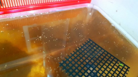다만, 치어들이 첫 먹이를 먹고 난 직후부터 바로 80~90%의 대량환수를 진행하는 것이 아닌, 첫날에는 30%, 둘쨋날에는 50~60%, 셋쨋날부터 90%와 같이 며칠에 걸쳐 개체들이 적응할 수 있는 시간을 주는 것이 좋습니다.