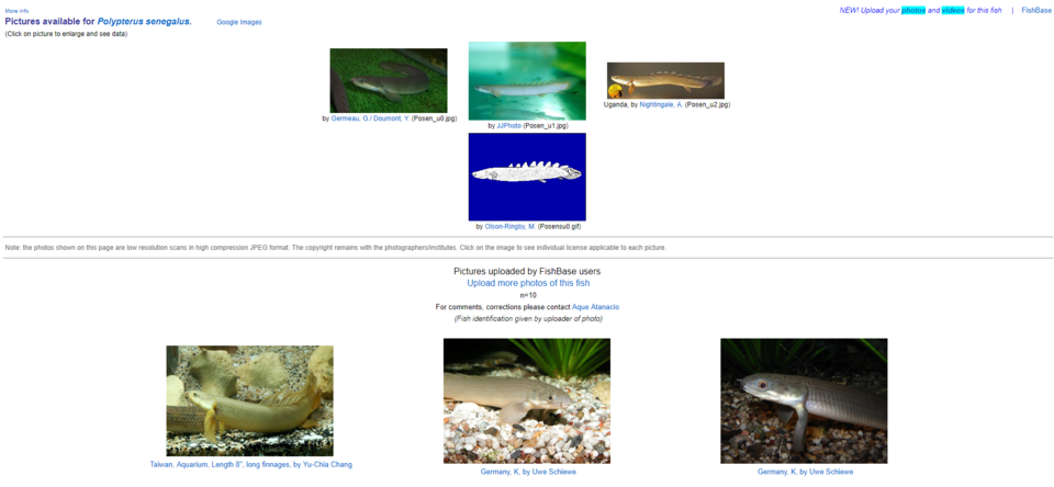 위 칸에는 학자들이 직접 등록한 사진들이 나와있으며, 아래에는 Fishbase를 사용하는 사용자들이 등록한 사진들이 올라갑니다.