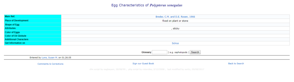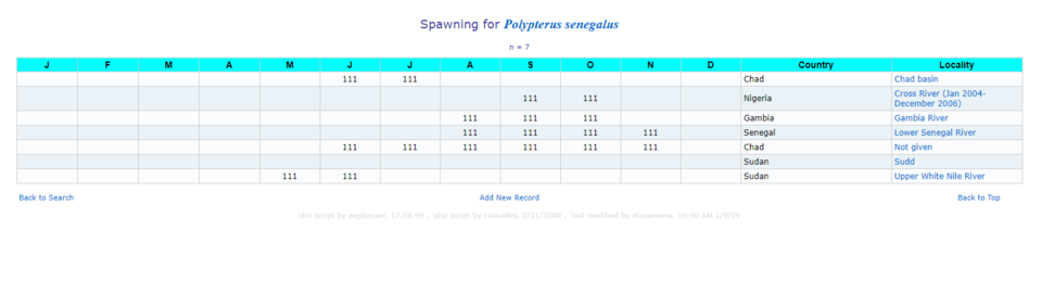 저는 Genus 칸과 Species 칸에 각각 Polypterus 와 Senegalus를 적어 검색했지만, Genus + Species 칸에 Polypterus seneglaus로 한번에 적어 검색해도 무방합니다.