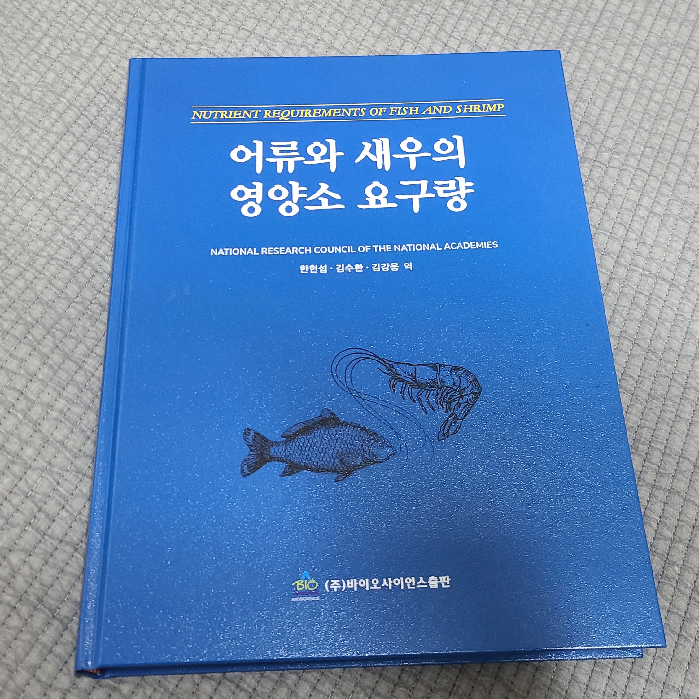 불과 3일전 한글판으로 출판된 따끈따끈한 신간 "어류와 새우의 영양소 요구량" 입니다.