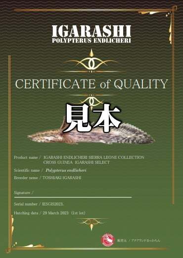 이번 시에라리온 X 기니 야생 F1 엔드리케리의 인증서