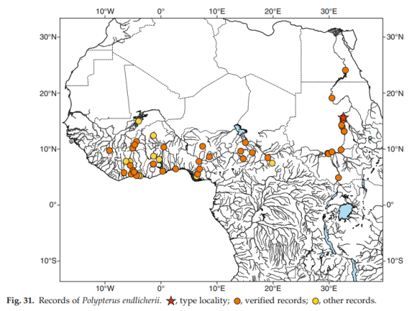 (현재까지 학술적으로 보고된 폴립테루스 엔드리케리의 서식지) 1